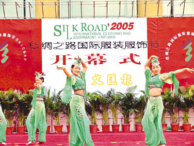 【本報駐新疆實習記者李若竹、丁勤烏魯木齊電】長長絲路連四海,款款長紗繫深情。眾人矚目的2005絲綢之路國際服裝服飾節日前在身穿各民族盛裝的新疆少女們陣陣歡快的舞姿中拉開了帷幕。