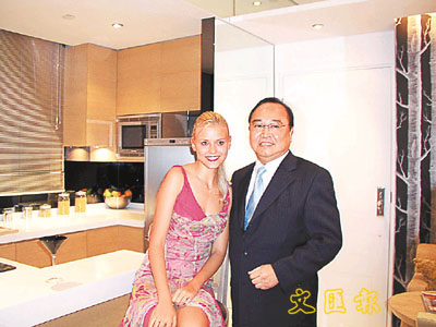 南豐集團董事兼地產部總經理麥一擎邀洋美女推介示範單位。周穎 攝