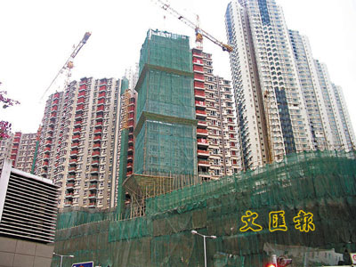 將軍澳君傲灣在興建中,右邊樓盤為將軍澳廣場。 周穎 攝