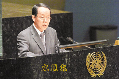 【本報訊】據新華網4日消息:綜合外電消息報道,中國常駐聯合國大使王光亞(圖)3日在聯合國說,中美兩國同意將共同作出努力,阻止日本、德國、印度和巴西提出的擴大安理會的決議提案,其原因是,雙方都認為,這個所謂的「四國集團」提案將會分裂聯合國191個成員國。