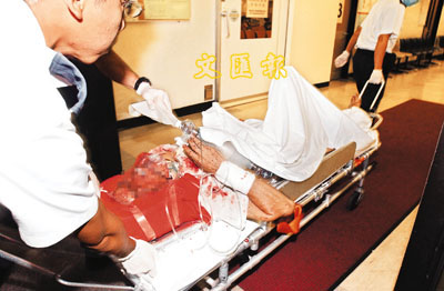 老翁頭部遭鐵鎚擊傷,滿臉披血送院搶救。