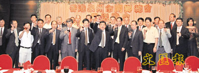 【本報訊】(記者 鄭群)泉州市同鄉總會昨假灣仔海港潮州城設晚宴,歡送來港泉州市招商慶賀團一行,會長顏純代表該會對泉州市是次在港招商活動取得圓滿成功表示熱烈祝賀,他祝願泉州與香港兩城市人民及政府共同努力,攜手合作共同譜寫新世紀的「雙城記」。