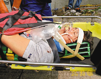 [2005-08-06] 吊臂車掃欄墮坡司機幸大樹救命 放大圖片
