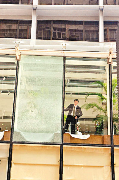酒店大玻璃龜裂封路 (圖)