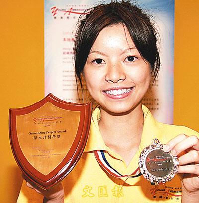 林培培參加青年大使計劃後,提高了組織及活動能力,改善與人溝通技巧,最後更獲傑出計劃年獎的榮譽,獲益良多。 趙焜崗 攝