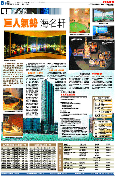 憑著優越地段、景觀、質素及設計等多項優勢獲英國The Bentley International Property Awards 2004獎項的海名軒,挾近日豪宅熱銷及市場對特色單位需求急增之勢,推出4,000餘呎全海景複式特色單位「總統大宅」。