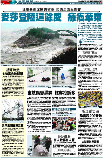 ¡@¡i¥»³ø¤W®ü·s»D¤¤¤ß°OªÌ§õ°¶¥6¤é¹q¡j¾Ú¤F¸Ñ¡A¡u³Á²ï¡v¬O8¦~¨Ó¼vÅT¤W®ü³Ì¬°ÄY«ªº¤@¦¸»ä·¡C·í¦a®ð¶H¥x¦b5¤é±ß±N¶À¦â¹wĵ«H¸¹¤É¯Å¬°¬õ¦â¡A¦Ü6¤é5ÂI¡A¤S§ï¬°¶Â¦âĵ³ø¡C¨ü»ä·¼vÅT¡A¤W®ü¥«°Ï·¤O¦³8-10¯Å¡Bªu®ü®ü±©M¬v¤s²`¤ô´ä®ü°Ï¹F12¯Å©Î¥H¤W¡C¹wp¼É«B¤Ñ®ð±N«ùÄò¨ì7¤é¡A³Ì°ª¯Å§OªºÄµ³ø«H¸¹±NÄ~Äòºû«ù¡C