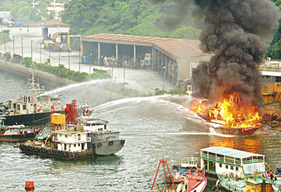 [2005-08-07] 烈火焚船 消防斬纜灌救 放大圖片