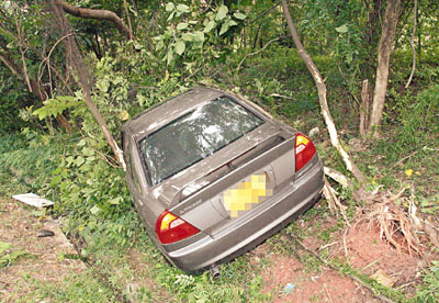 【本報訊】一輛私家車,昨晨沿吐露港公路向馬料水行駛,當左轉入廣福道時,疑高速入彎失控,剷過路邊草坪撞入樹叢,車頭毀爛,擋風玻璃破損。二十七歲姓吳司機幸得安全氣袋保護,僅頸部不適送院,警方對意外正展開調查。