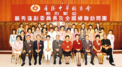 【本報訊】(記者 鄭群)全國人大常委會副委員長、中華全國婦女聯合會主席顧秀蓮、副主席莫文秀率領全國婦聯訪問團,在中聯辦副主任郭莉陪同下,日前到訪香港中華總商會。顧秀蓮表示,香港有豐富的管理經驗、人才濟濟,希望香港能積極參與泛珠三角區域發展,與其他地區聯手達至雙贏互補,讓9+2泛珠三角區域成功發展起來。