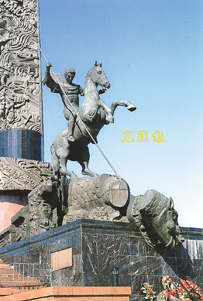 勝利碑下是俄國守護神,他的長矛指向一條斷頭毒龍。
