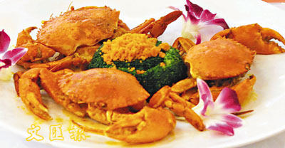 以美食家自居的李漁評說螃蟹,獨於蟹螯一物,終其身皆不能忘之至其可嗜可甘與不可忘之故,則絕口不能形容。黃金炒蟹採用粵港食客至愛的重殼蟹,配上鹹蛋黃後翻炒,端上來可是金光閃閃,香氣四溢,口味甘香,可謂色香味俱全。