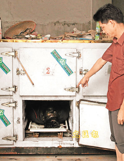 ■在礦井找到的第一具遇難礦工遺體被安放在興寧殯儀館內。新華社