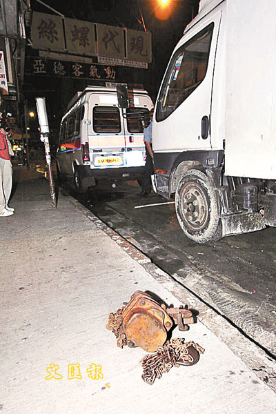 【本報訊】旺角特別職務隊警員巡經廣東道983號時,發現一名形跡可疑男子,爬上一輛停泊路旁的吊臂貨車,偷取一個價值200元的起重滑輪,警員立即趨前截停他,經調查後拘捕一名姓李(55歲)男子,帶署扣查。