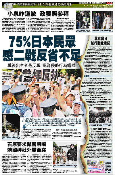 [2005-08-16] 75%日本民眾 感二戰反省不足 放大圖片