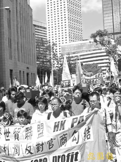 警方指已與民間監察世貿聯盟聯絡,就年杪世貿會議作溝通。圖為民間監察世貿聯盟早前的遊行。
