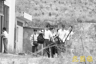 死者家屬用旅行袋裝載著王氏夫婦的骨灰離開。 本報深圳傳真