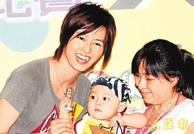 梁詠琪逗孩子,逗出「母性」真情。 美聯社