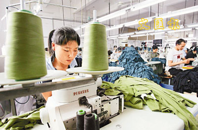 ■不少內地紡織企業有意與港商合作,利用外發加工機制出貨,減低受歐美限制困擾。圖為東莞一家製衣廠。 資料圖片