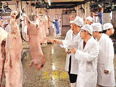 食環署的考察組此行考察了四川最大的生豬加工出口企業—資陽四海集團,去年該企業曾出口了價值2,500萬美元的川豬到港澳等地。在四海公司,香港官員參觀了生豬從屠宰切割,到包裝運輸的全部過程,並對豬肉存放倉庫進行了仔細檢查。