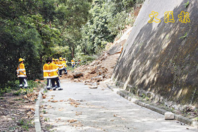 【本報訊】龍欣道豐力樓對開發生山泥傾瀉,阻礙行車通道,有途人發現致電報警;消防員接報到場利用生命探測器證實無人被困,而塌下的山泥相信由一幅10米乘10米的護土牆瀉下,事後已通知土力工程署派人到場勘察,現場一段路面需要暫時封閉進行清理。