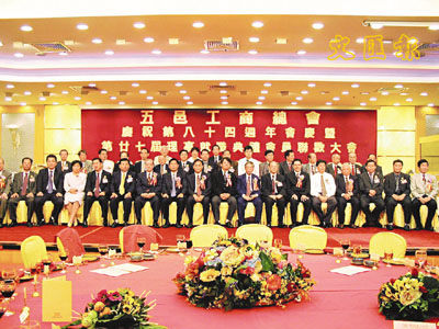 香港五邑工商總會第27屆理事就職,賓主合照。 沈清麗 攝