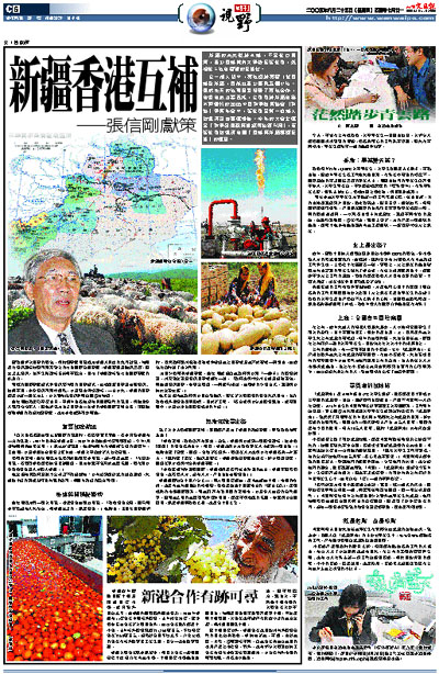 新疆的未來繫於本港,不是信口開河,至少香港城市大學校長張信剛,就相信二地有極強的互補性。