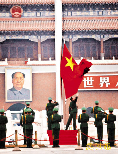 在北京天安門廣場觀看升國旗儀式成為考察國情的必修課。 資料圖片