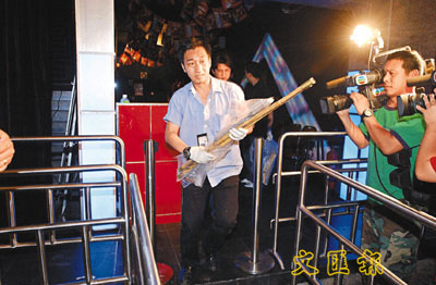 警方在旺角搜查的士高檢獲的木棍。