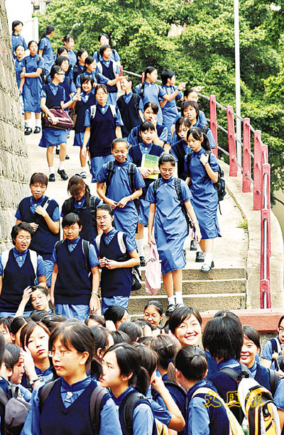 課室空調過凍,及校服太薄等原因,導致很多學生在夏季校服外披以冷背心。 資料圖片