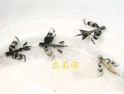 ■4條形似蝴蝶的小魚在水盆中起「舞」。 趙剛 攝