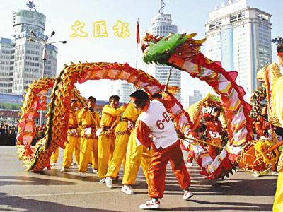■雲南少數民族的發展受到外間的關注,《百龍鬧春》民族舞獅表演為昆明街頭增添不少歡樂。 攝影:喻波