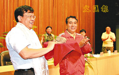 ■西藏登山隊向紅塔集團贈送採自珠峰頂的化石。 攝影:譚旻煦