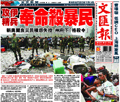 颶風「卡特里娜」重創美國南部新奧爾良市後第4天,當地陷入無政府狀態,災民與當局的對立情緒升溫,搶劫、強姦、鬥毆、開槍事件不斷發生,軍警已受命對暴民一概「格殺勿論」。但數以萬計的災民則指摘當局賑災不力,逼使他們鋌而走險。有災民說,現在的新奧爾良連難民營都不如。