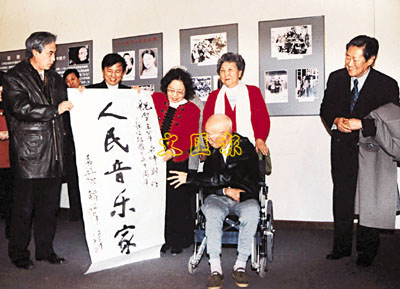 《歌唱祖國》創作50周年時,學生們為他送上「人民音樂家」的題詞。