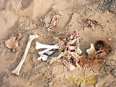墓區內發現的屍骨及金黃色頭髮。