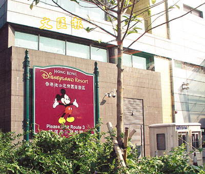 ■落馬洲管制站外有指示,教導駕車人士如何前往迪士尼樂園。 陳朗昇 攝