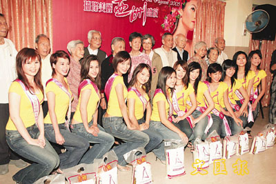亞姐聯袂探訪老人派送月餅,以示美貌與愛心兼備。