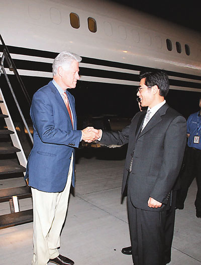【本報駐浙江記者朱薇、李晨、茅建興杭州9日電】美國前總統克林頓今天晚上抵達杭州蕭山機場。他將於10日中午在互聯網業界盛會第5屆「西湖論劍」進行1個小時的主題演講,以開拓者的獨特視角闡釋互聯網的未來。