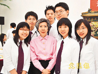 ■全國政協常委伍淑清與學員們在人民大會堂歡聚。