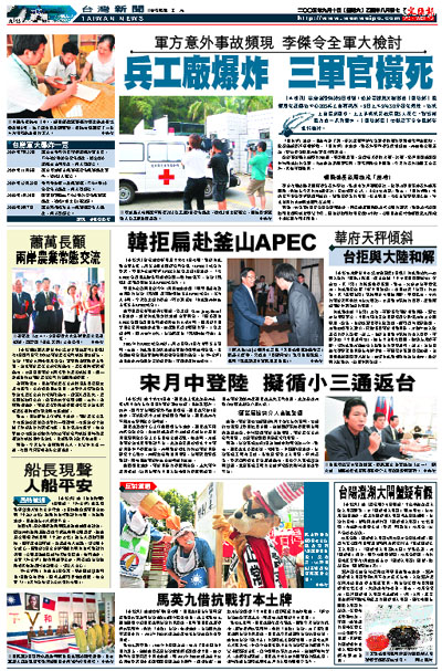 【本報訊】綜合台灣媒體9日報道:位於高雄縣大樹鄉的「國防部」軍備局生產製造中心203兵工廠藥棉所,9日上午9時30分發生爆炸,造成士官長邱國珍、上士許明成及蘇清國3人死亡。對近期軍方的一系列意外,「國防部長」李傑已下令全軍部隊進行檢討。