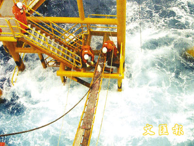 怒濤施工 全國最大的春曉油田中心平台工程完工。