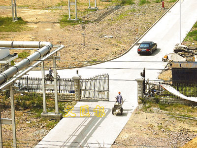 春曉天然氣處理廠基建已處於收尾階段。圖為民工在廠區做清掃工作。