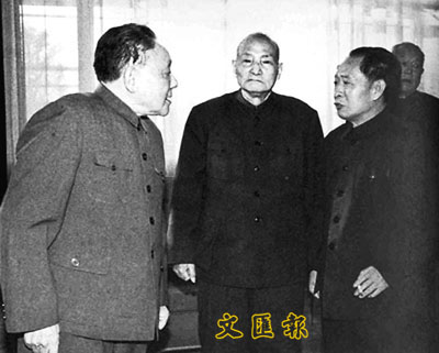 ■1981年,鄧小平與陳雲、胡耀邦在人民大會堂。 資料圖片