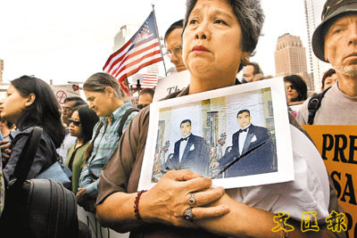 不過,超過500名罹難者家屬前日在世貿遺址外示威,抗議遺址計劃興建「國際自由中心」(IFC),他們手持遇難親屬的照片和寫上「保存神聖的遺址」。罹難者家屬表示憂慮到IFC會搶去罹難者的「風頭」,認為該博物館不應展出人們在全球為自由掙扎的展覽。林奇的消防員兒子在9.11事件中殉職,她說:「這是重要的訊息,但請在其他地方展出,不是在美國的紀念地點。」