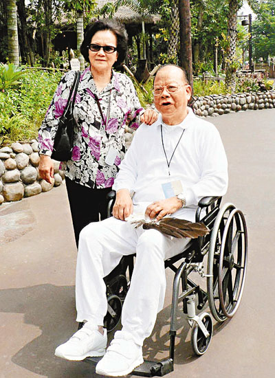■曾憲梓由太太陪同來到。梁紹明 攝