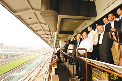【本報訊】(記者 聶曉輝)國家副主席曾慶紅昨日到香港沙田賽馬場,考察2008年奧運會馬術比賽項目的籌備情況,作為訪港正式考察的開始。在聽取馬會高層介紹香港賽馬的情況,以及賽馬會對香港慈善事業的貢獻後,曾慶紅高興地說:「(香港)馬照樣在跑,而且越跑越歡。」他鼓勵香港與北京共圓一個夢,把2008年奧運馬術比賽做好。
