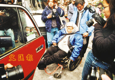 ■李沛新曾推半癱母街頭行乞。 資料圖片
