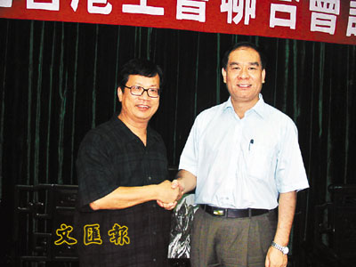 廣州市人大常委會副主任、市總工會主席陳偉光與工聯會會長鄭耀棠會面。梁茹 攝