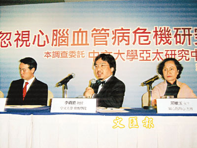 ¡@¤¤¤j¨È¤Ó¬ã¨s©Ò¤µ¦~7¤ë¹ï¥«¥Á¹ïÁx©T¾J»{ÃÑ·N¨£¶i¦æ½Õ¬d¡A¦¨¥\¥Î¹q¸Ü©â¼Ë³X°Ý551¦W¦~ÄÖ¦b30¦Ü69·³¥«¥Á¡Cµ²ªGÅã¥Ü¡A¨ü³XªÌ´¶¹Mª¾¹D°ªÁx©T¾J·|¾ÉP¤ß¸£¦åºÞ¯f¡C¥u¦³¤@¥b¨ü³XªÌ°µ¹LÁx©T¾JÀˬd¡A·í¤¤¥|¦¨Áx©T¾J¶W¥X¼Ð·Ç¡C¥t¥~¦³¶W¹L¥|¦¨¤HÅç§¹Áx©T¾J«á¡A¨ÃµL¸ò¶iªvÀø¡C